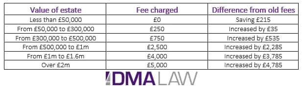 Previously only estates under £5,000 were exempt now with the new fee 25,000 estates a year will be removed from paying probate.